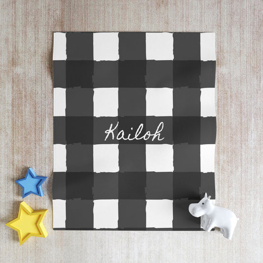 Personalized Charming Checkered: Black & White Kids Throw Blanket